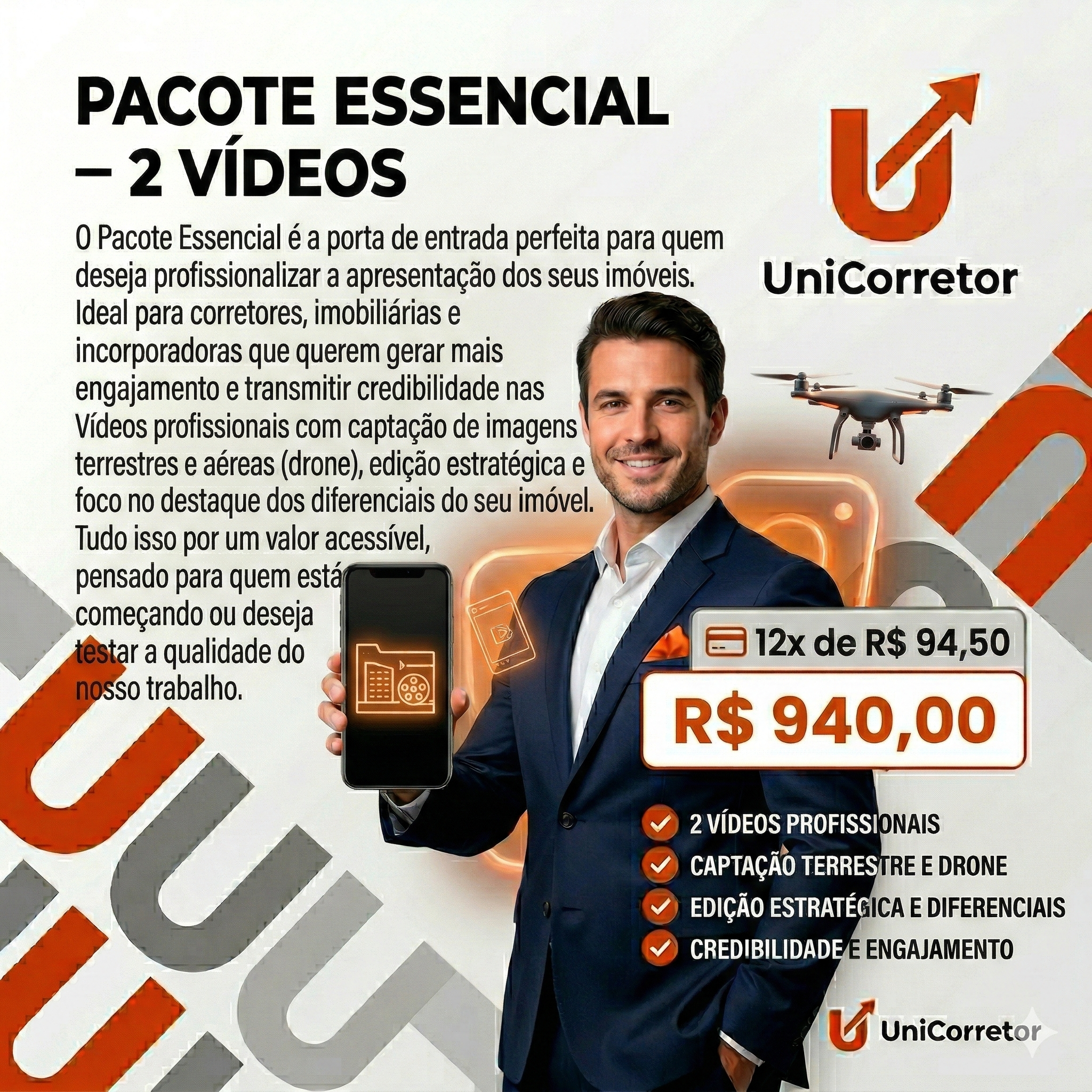 O Pacote Essencial é a porta de entrada perfeita para quem deseja profissionalizar a apresentação dos seus imóveis.